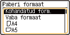 Kui kuvatav paberi formaat/tüüp erineb laaditud paberi formaadist/tüübist, valige <Paberi seaded> ja valige paberi allikas, kuhu paber on laaditud.