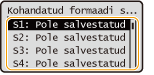 Valige nupp <S1> kuni <S5>