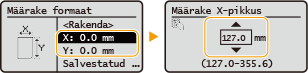 Määrake <X>-külje ja <Y>-külje pikkus. Valige <X> või <Y> ja sisestage kummagi külje pikkus numbriklahvide või