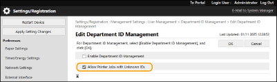 Valige see märkeruut, et aktsepteerida printimistöid printeridraiveritest, mis ei toeta osakonna ID haldamist.