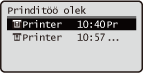1 | Valige <Tööde logi>, valige üksus valige dokument, mille ajalugu vaadata.<OK> kuvatakse, kui dokument on edukalt prinditud, <Error> kuvatakse, kui dokumendi printimine nurjus, kuna see tühistati või oli mingi tõrge. ![]() Kuvab dokumendi kohta detailse teabe. |