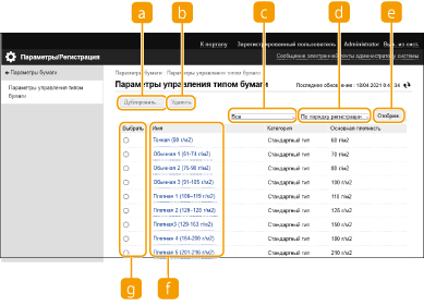 Можно регистрировать и редактировать детальные сведения о часто используемых типах бумаги в виде [Пользовательский тип].