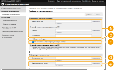 * Пользователи, зарегистрированные в локальном устройстве, могут настроить параметры самостоятельно, либо администратор может задать параметры пакетно с помощью файла CSV.