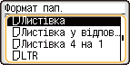 Відобразиться екран для зазначення формату й типу паперу.