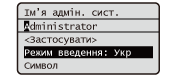 Натисніть клавішу або виберіть <Символ> і натисніть клавішу , якщо потрібно ввести тип тексту <A> або <a>, щоб відобразити на екрані символи, які можна ввести. За допомогою клавіш / / / виберіть потрібний символ і натисніть клавішу . |