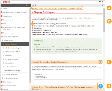 Клацніть, щоб вибрати такі параметри, як розмір тексту, компонування та спосіб відображення посібника «Посібник користувача».
