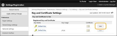 Клацніть [Use] для ключа й сертифіката, які потрібно використовувати для зашифрованого зв’язку за протоколом TLS.