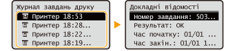 Якщо документ надруковано успішно, відображається <OK>. Якщо документ не вдалося надрукувати через скасування операції або помилку, відображається <Error>.