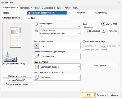 За потреби вкажіть значення параметрів друку, а потім натисніть кнопку [OK].
