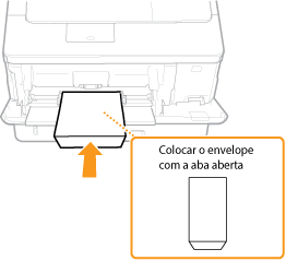 Coloque os envelopes na orientação vertical (com a extremidade curta virada para a máquina), com o lado sem cola (parte da frente) virado para baixo. Não é possível imprimir no verso dos envelopes.