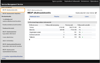 Itt ellenőrizheti a telepített alkalmazások számát és a felhasznált tárhely mennyiségét. A MEAP-alkalmazások kezelése
