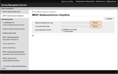A MEAP-alkalmazás verziója a telepítéssel megegyező művelettel frissíthető. A telepítés előtt állítsa meg a MEAP-alkalmazást az SMS-képernyőn. A MEAP-alkalmazások kezelése