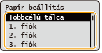 Amikor kinyitja a papírfiókot, a képernyő felső részét megjelennek az aktuális papírbeállítások.