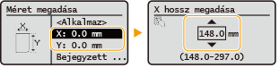 Válassza a <X> vagy <Y> elemet, majd adja meg az egyes oldalak hosszát a számbillentyűk vagy a  /  gomb használatával.