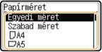Ha gyakran kell módosítania a betöltendő papírt, állítsa <Szabad> értékre; ezzel csökken a beállítás módosításához minden egyes alkalommal szükséges lépések száma. Vegye azonban figyelembe, hogy ezzel a beállítással a készülék akkor is nyomtathat, ha nem egyezik a nyomtató-illesztőprogramban megadott papírtípus-beállítás a készülékbe ténylegesen beadagolt papír típusával.