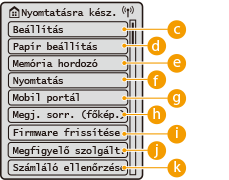 A <Funkció beállítás>, <Beállítások> és sok más készülékbeállítás ezzel a gombbal indítható.
