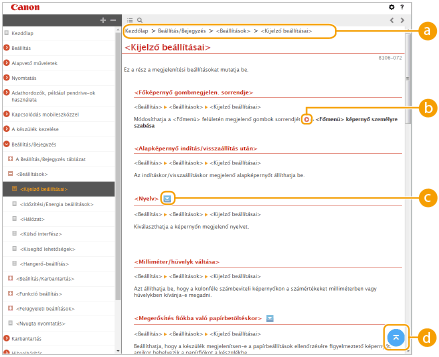 Kattintson ide az olyan beállítások megadásához, mint például a szövegméret, az elrendezés, illetve a Felhasználói kézikönyv megjelenítési módszere.