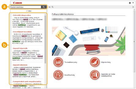 Kattintson az Felhasználói kézikönyv megtekintésével, keresések végrehajtásával kapcsolatos és más információk megjelenítéséhez.