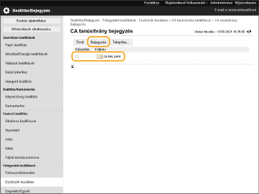CA tanúsítvány törléséhez válassza ki a törlendőt, és kattintson a [Töröl]