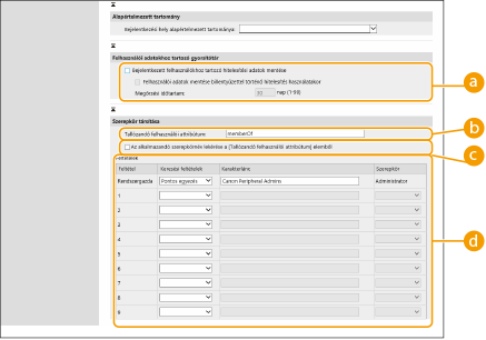 A [Tallózandó felhasználói attribútum:] elemben megadott attribútumhoz bejegyzett karakterláncot írhatja be. Ha a jogosultságokat a felhasználó csoportja alapján akarja beállítani, írja be a csoport nevét.