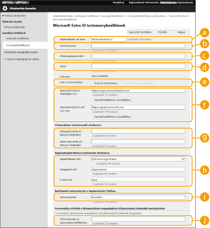 Kattintson a [Kezdeti beállítások visszaállítása] elemre az [Microsoft Entra ID hitelesítési URL] / [Microsoft Entra ID API URL-cím] URL-címének visszaállításához az alapértelmezett értékre. Alapértelmezett érték: