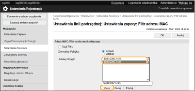 Zaznacz adres MAC i kliknij przycisk [Usuń].