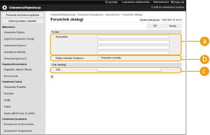 Wiadomości dla użytkowników można wyświetlać na stronie portalu w interfejsie Remote UI (Zdalny interfejs użytkownika). Aby skonfigurować te ustawienia, wymagane są uprawnienia administratora.