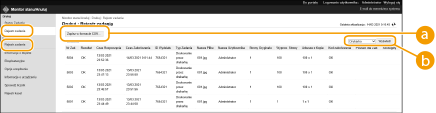 Dane rejestru można eksportować i zapisywać w formie plików CSV (*.csv) na komputerze.