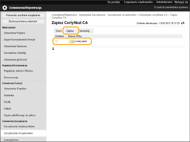 Wybierz certyfikat CA, który chcesz zarejestrować i naciśnij [Zarejestruj].