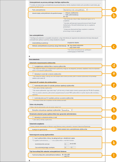 Możesz skonfigurować ustawienia szczegółowe dla funkcji uwierzytelniania.