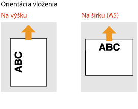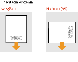 Spôsob vkladania sa líši v závislosti od toho, či je orientácia papiera s vytlačeným logom na výšku alebo na šírku.