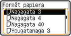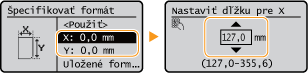 Keď si často používané formáty papiera zaregistrujete pod tlačidlá <S1> až <S5>, môžete ich potom vyvolať výberom položky <Uložené formáty>.Uloženie papiera ľubovoľného formátu (papier vlastného formátu)