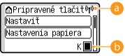 Toto tlačidlo umožňuje špecifikovať veľkosť a typ papiera vloženého do zásuvky na papier a mnohoúčelového priečinka.