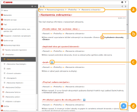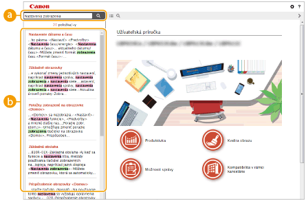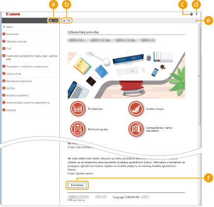 Kliknutím zobrazíte informácií o tom, ako zobraziť príručku Užívateľská príručka, ako vyhľadávať a ďalšie informácie.