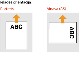 Ja ievietojat papīru, uz kura ir iepriekš uzdrukāts logotips, pievērsiet uzmanību papīra orientācijai neatkarīgi no tā, vai izmantojat papīra atvilktni vai universālo paliktni. Ievietojiet papīru pareizi — tā, lai drukāšana tiktu veikta uz logotipa papīra puses.