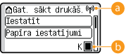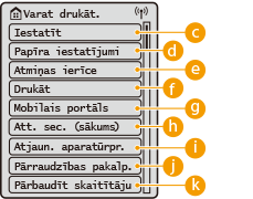 Izmantojot šo pogu, var piekļūt daudziem iekārtas iestatījumiem, piemēram, <Funkciju iestatījumi> un <Preferences>.