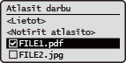 Izvēlieties dokumentus <Atlasīt darbu> ekrānā un nospiediet