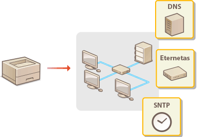 Tinklo apimtis ir forma nevienoda atsižvelgiant į tinklo paskirtį. Aparatas naudoja įvairias technologijas, kad galėtų prisitaikyti prie kuo įvairesnės aplinkos. Kreipkitės į tinklo administratorių ir nustatykite būtinus parametrus pagal savo aplinką.