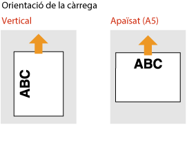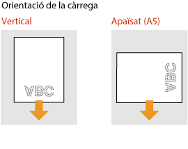 El mètode de càrrega és diferent en funció de si l'orientació del paper que té el logotip imprès és horitzontal o vertical.