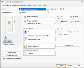 Especifiqueu les opcions d'impressió segons calgui i feu clic a [D'acord].