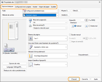 Especifiqueu les opcions d'impressió segons calgui i feu clic a [D'acord].