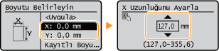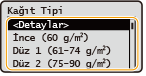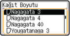 Sık kullanılan kağıt boyutları <S1> - <S5> düğmelerine kaydedilirse bunlar <Kayıtlı Boyutlar> seçilerek getirilebilir.Serbest Boyutlu Kağıt (Özel Boyutlu Kağıt) Kaydetme