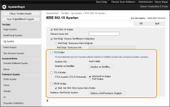 [Ağ Ayarları]  [IEEE 802.1X Ayarları] seçeneğine tıklayın.