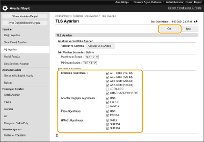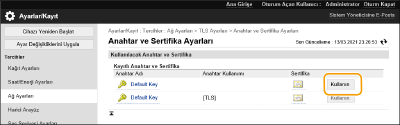 Kendi oluşturduğunuz anahtar ve sertifikayı kullanmak istiyorsanız aşağıdaki prosedürü uygulamadan önce anahtarı ve sertifikayı oluşturun. Ağ İletişimi için Anahtar ve Sertifika Oluşturma