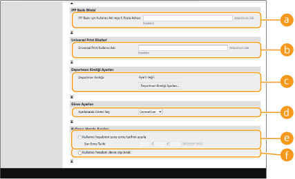 Kullanıcı adı sayılardan oluşuyorsa ve yedi ya da daha az basamaklıysa, Departman Kimliği olarak aynı sayı aynı kullanıcıya atanır. Aynı kullanıcının parolası yedi veya daha az basamaklı bir sayı olarak kaydedilirse, bu sayı söz konusu Departman Kimliğinin PIN kodu olarak da ayarlanır.