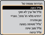 בחר הגדרה  בחר <מופעל> או <כבוי>.