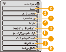 <إعدادات الوظائف>، <التفضيلات>، ويمكن بدء العديد من إعدادات الجهاز الأخرى من هذا الزر.