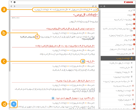 انقر لتحديد إعدادات مثل حجم النص والتخطيط وطريقة العرض لـ دليل المستخدم.