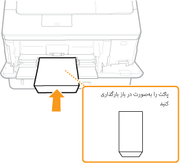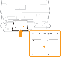 پاکت نامهها را در جهت عمودی بارگذاری کنید (لبههای کوتاه به طرف دستگاه قرار بگیرند) و طرف بدون چسب (سمت جلو) رو به پایین باشد. نمی توانید روی سمت پشت پاکت نامهها چاپ کنید.