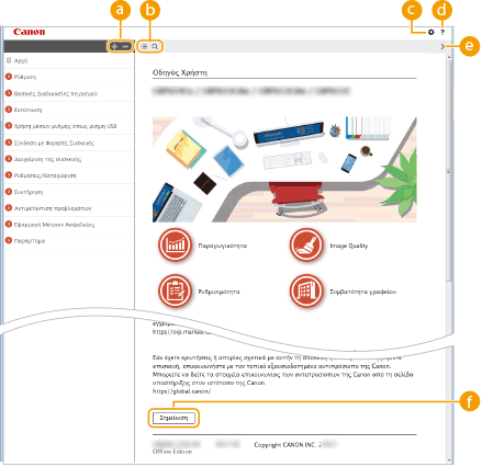 Κάντε κλικ για να εμφανιστούν πληροφορίες σχετικά με το πώς μπορείτε να προβάλλετε το εγχειρίδιο Οδηγός Χρήστη, να πραγματοποιείτε αναζήτηση και άλλες πληροφορίες.